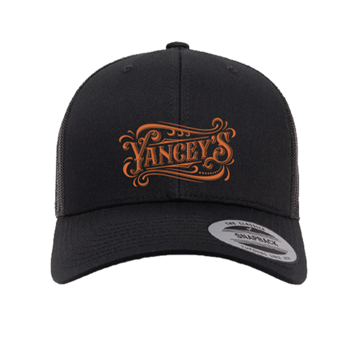 Top off your look with this classic black snapback featuring the bold Yancey’s logo in orange. Adjustable for a perfect fit and made for everyday wear.